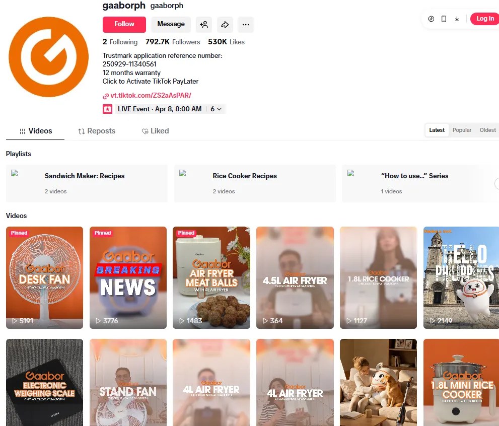 截至目前,Gaabor TikTok 全平台总粉丝已突破 137 万,累计曝光量超数亿次。其中菲律宾账号 @gaaborph 表现最为亮眼,粉丝量达 79.2 万、获赞 53 万;印尼、泰国账号粉丝量分别为 18.43 万、12.15 万。