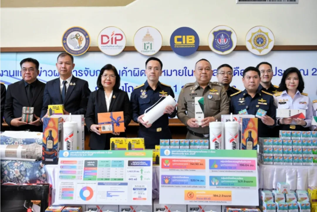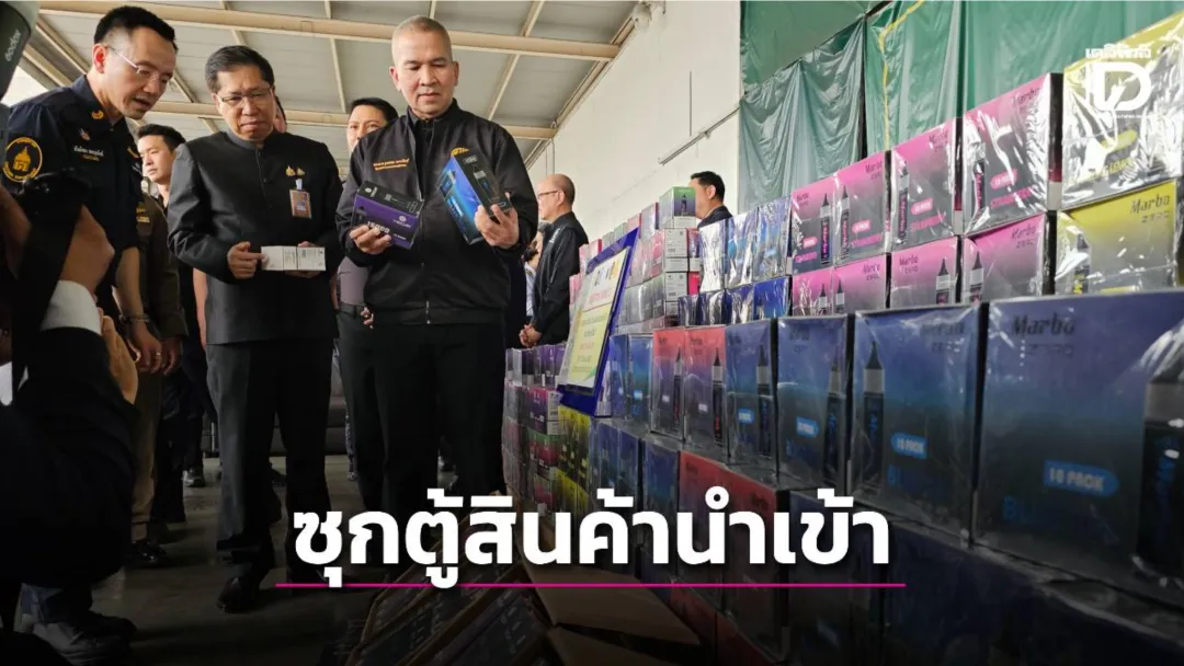 更早一些,泰国司法部长联合特别调查厅和海关,成功捣毁一起特大走私案。根据线报,调查组获悉有物流公司将电子烟伪装成普通货物,计划从中国通过海运渠道偷运入境。随即,专案组对曼谷港的可疑集装箱展开突击搜查,一举查获走私电子烟超4万件,涉案价值逾1000万泰铢。