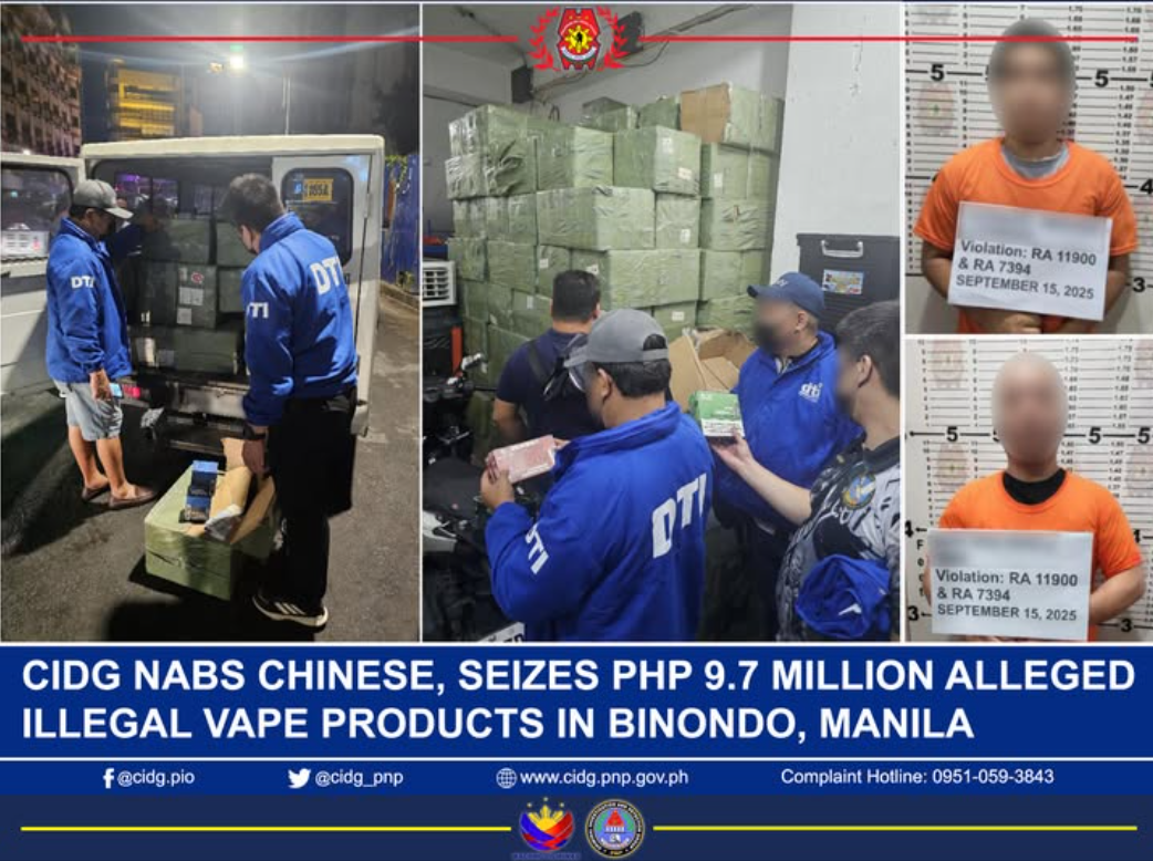 具体来看,9 月 15 日至 16 日凌晨,菲律宾刑事调查和侦查组(CIDG)联合贸工部等多部门,在马尼拉岷伦洛华人区一处仓库开展诱捕行动,当场缴获 7100 件非法电子烟。经查,这些电子烟无健康警示标识、不符合贸工部规范,估值约 970 万比索。