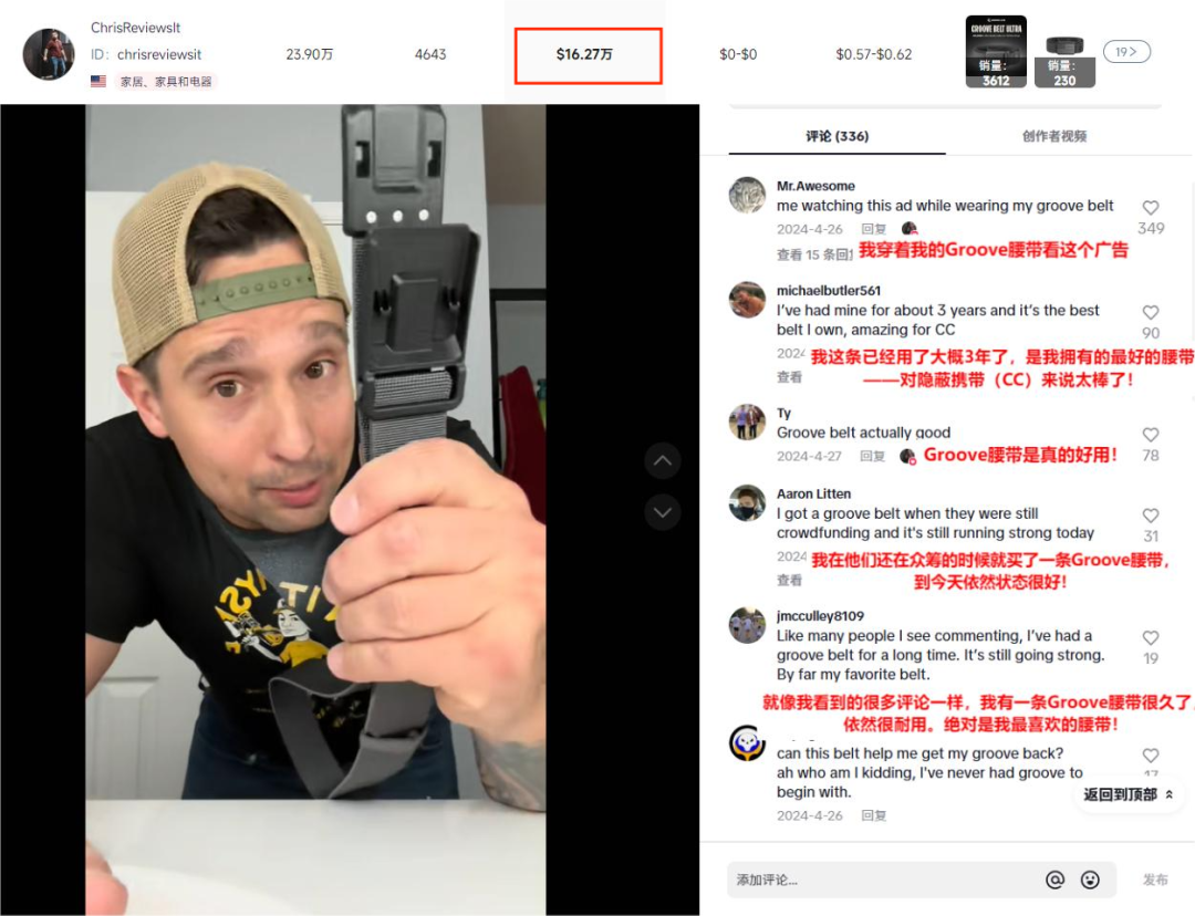 比如 @chrisreviewsit 通过详细测评展示戒指舒适度,视频播放超 1000 万,直接带来 16 万美元销售额。