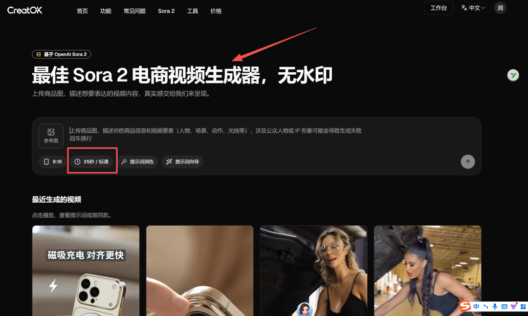 而 CreatOK.ai 则将这份强大技术封装成一键操作的在线工具,彻底降低了使用门槛。更吸引人的是,它支持无水印下载、无需邀请码,不限制生成次数,最多可制作25秒视频,使用成本远低于官方 API,国内用户直接访问官网即可使用。