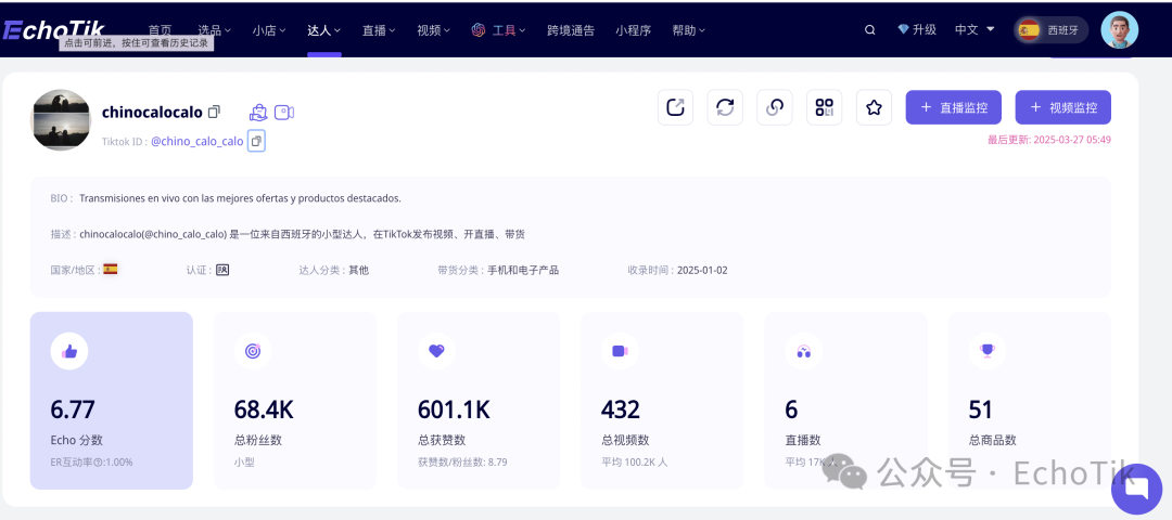 该达人主要以短视频带货为主,产品主要集中在手机和电子产品类目。