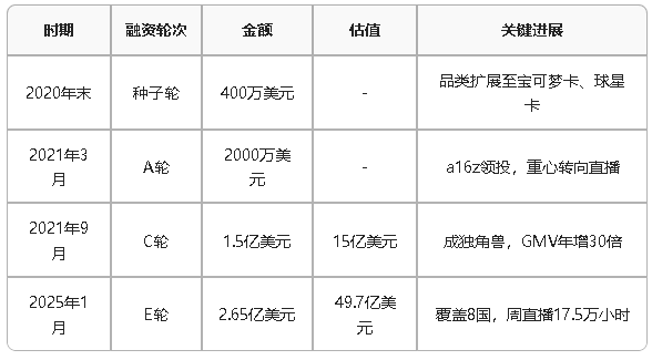3)拍卖机制激发溢价:稀有球星卡在直播竞价中 10 分钟内溢价 30% 成交,远超 eBay 数月挂价效率,拆箱直播的“赌博式体验”进一步刺激消费冲动。