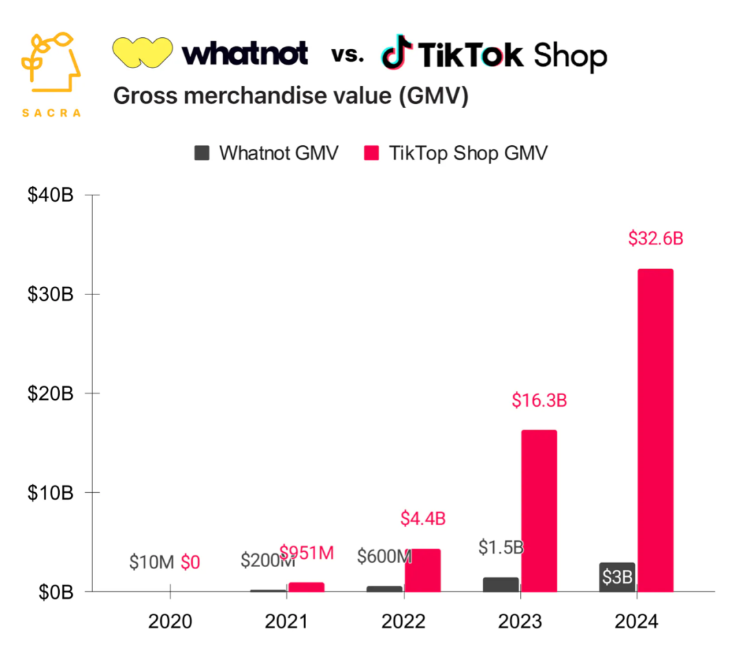 成立于 2019 年的 Whatnot 是一家美国社交电商平台,由于受到资本的追捧以及 GMV 快速增长,目前被视为 TikTok Shop 最强有力的竞争对手。