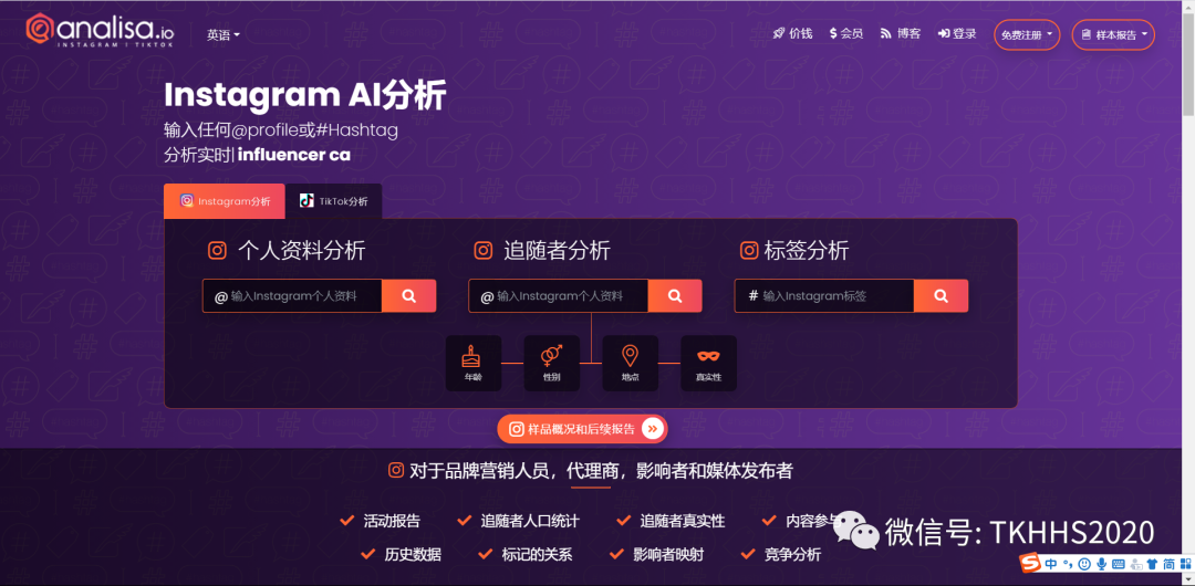 这是一款免费的TikTok排名分析工具,里面还有ins的排名