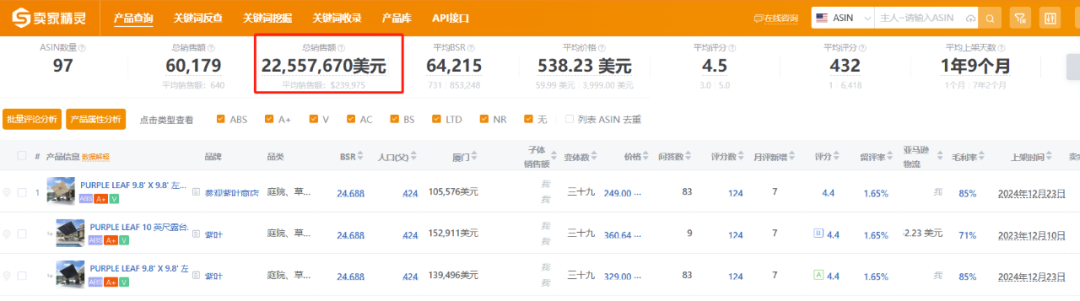 卖家精灵数据显示,自品牌入驻亚马逊后,总销售额达 2255 万美元(合人民币 1.4 亿)。