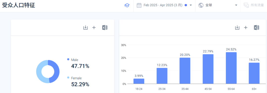核心消费群体集中在 35-64 岁的中高收入人群,占比达 67.51%。