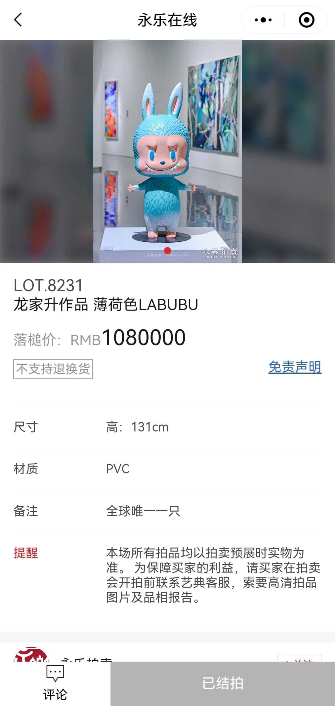 Labubu,泡泡玛特旗下的当家花旦,在明星网红效应和社交媒体巨量曝光的加持下,长期稳居潮玩圈顶流地位。就在昨天,一款全球唯一的薄荷色Labubu在永乐2025春季拍卖会上以108万元的天价落槌。
