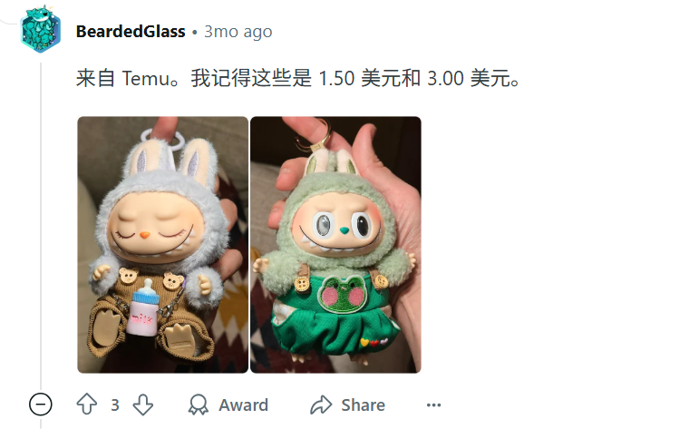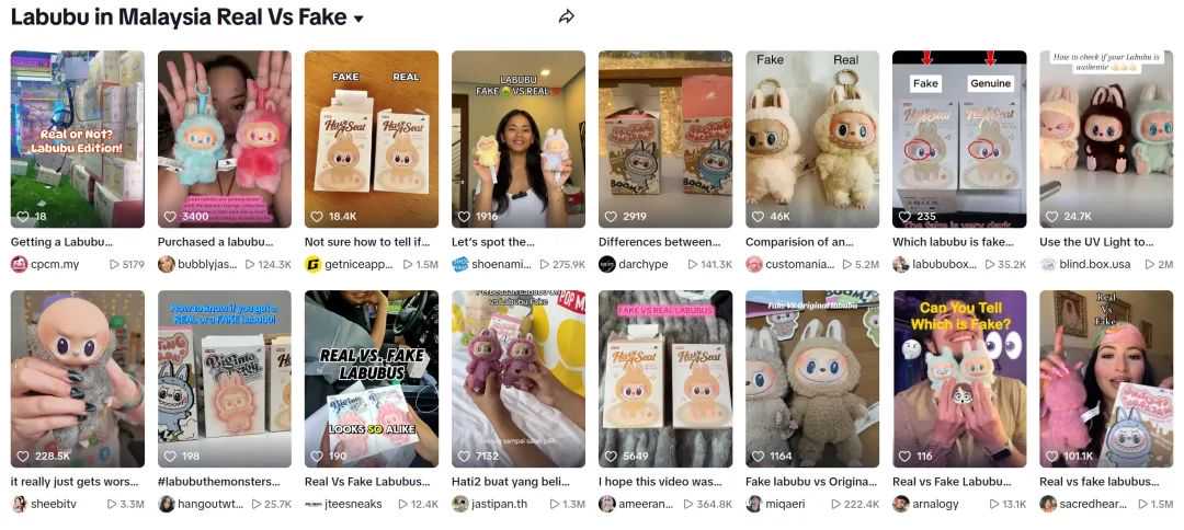 业内所称的“祖国版Labubu”主要以不足正版三分之一的价格吸引消费者,目标客群直指因正版溢价过高或抢购困难而望而却步的人群。有趣的是,部分产品明显存在涂装瑕疵、版型走样等问题,但海外消费者一边在“打假”,一边却依旧热情不减,被戏称为"Lafufu"的仿冒品们甚至在社交平台强势“出道”。