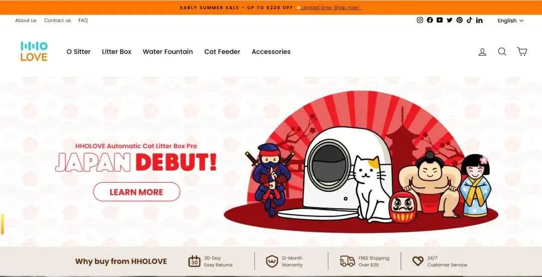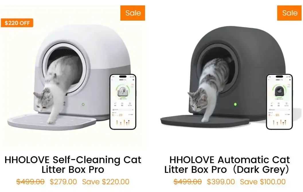 依托产品力的深耕,HHOLOVE 在定位上主打中高端消费市场,旗下两款智能猫砂盆在独立站的定价分别为 279 美元和 399 美元,凭借高性价优势抢占市场空位。