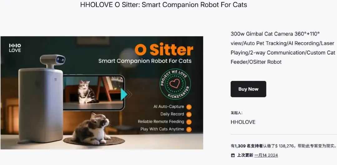 如 HHOLOVEO Sitter 智能猫咪陪伴机器人在美国上线之际,先通过众筹平台 Kickstarte 冷启动试水,成功斩获 1309 名支持者,众筹金额达 13.8 万美金。这一渠道在帮助 HHOLOVE 降低初期营销成本的同时,也得以测试市场反馈并积累一批用户。