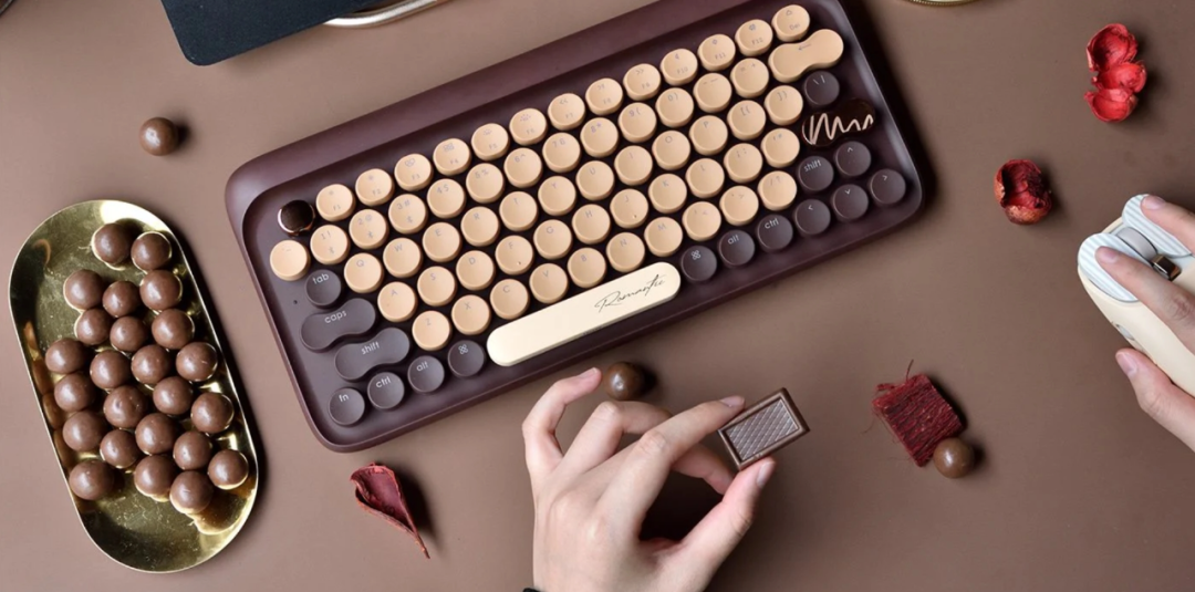 其次则是键帽形状的差异化设计。和一般键帽方方正正的样式不同,Lofree 键帽状似打字机的造型极具辨识度,圆润的边角设计加上出色的轴体性能,使得其得以从一众同质化键盘中脱颖而出。