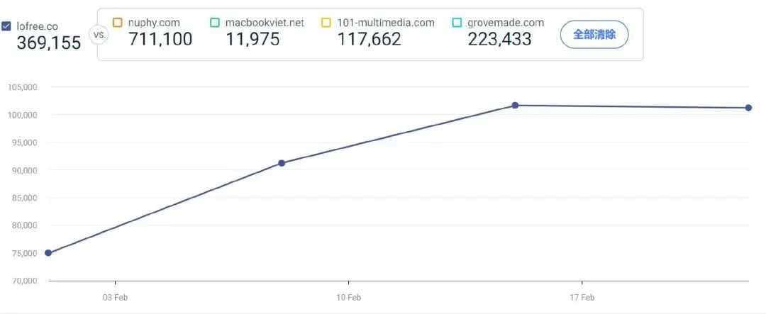 Similarweb 数据显示,2025 年 2 月,Lofree 海外主站的月访问量达 37 万,其中美国市场占据近 21% 的份额,整体流量表现颇为亮眼,可以看到已然在欧美、日本以及东南亚地区积累了一批忠实受众。