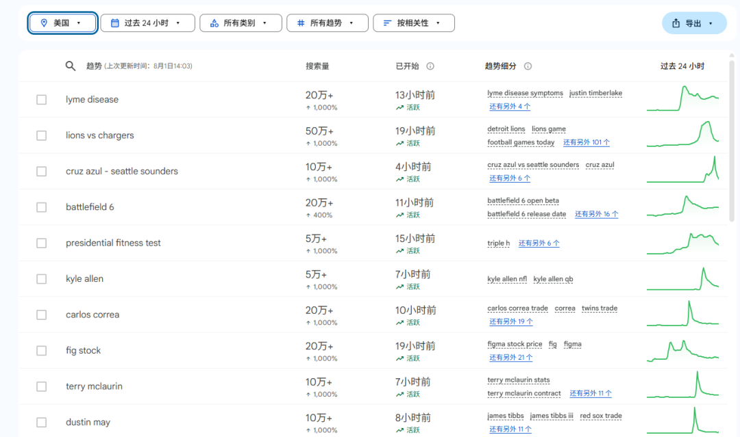 工具 1:Google Trends【输入品类,看目标市场搜索热度曲线】