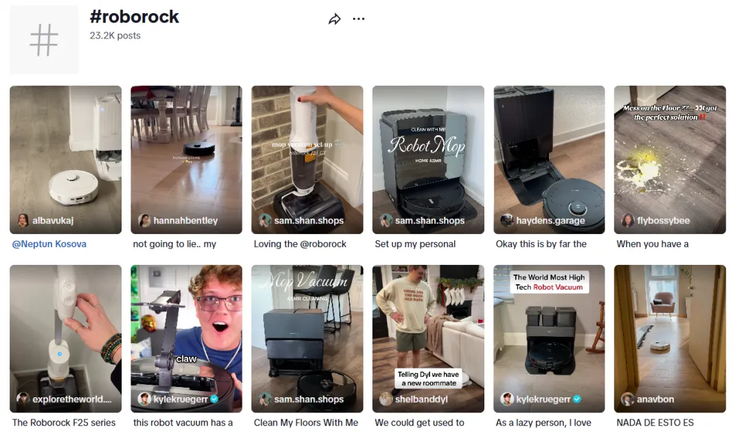 Roborock与其合作无口播沉浸式内容,全程拍Saros 10拆箱、设置、自动洗拖布的过程。没有一句推销,全是清洁泡沫滋滋响、机器运行的治愈画面——这刚好踩中欧美用户超爱的ASMR热潮。文案就一句“Set up my personal house cleaner with me! ”,像朋友分享日常。