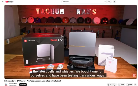 针对高端机型Saros Z70,他们找YouTube专业频道@Vacuum Wars做深度测评。