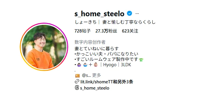 选择27.36万粉丝的生活方式垂类博主@s_home_steelo,86.59%粉丝为日本本土用户,内容聚焦家庭生活,粉丝粘性高、消费决策力强;