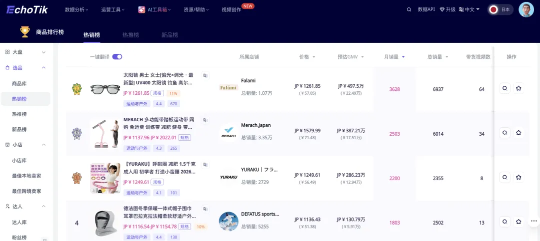 TikTok日本如果推出“本地生活”服务,就可以实现这个闭环。当本地商家把“信任度”做起来后,整个平台的 GMV 天花板会被拉高,跨境卖家可以利用 EchoTik 监测这些本地爆款,寻找“平替”或“周边配套”机会。