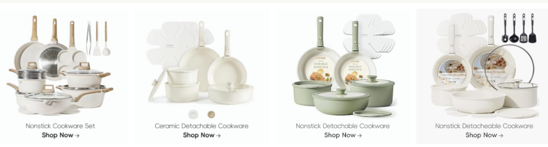 其中一款“奶油风可移动手柄的平底不粘锅”上线第一个月便销量过万。随后,卡罗特其他炊具品类在亚马逊的月销都超上万件。