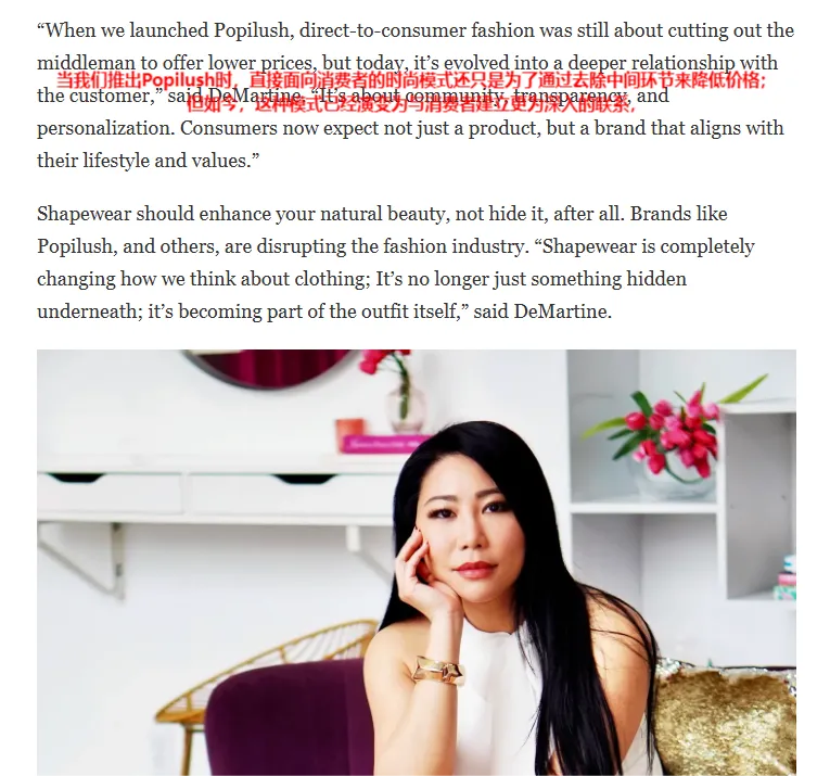 在这样的行业大背景下,Popilush 作为一个主打“内置塑形”的女性时尚品牌,以“把塑身衣直接做进连衣裙和日常服饰里”的思路快速蹿红,创始人 Eve DeMartine 也借此在 2025 年入选 Inc.杂志“Female Founders 500”(女性创始人 500 强)榜单,成为近年来塑身赛道中颇受关注的创业者之一。