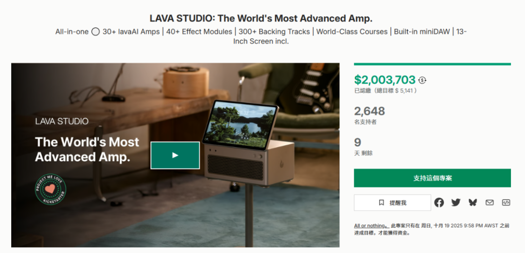就在今年 9 月,LAVA MUSIC 品牌在 Kickstarter 上发布了 LAVA STUDIO 智能音箱,并在两小时内获得了 50 万美元的众筹,如今已突破了 200 万美元。