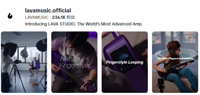 截至目前,该品牌在 TikTok 上的官方账号@lavamusic.official 已经获得了 23.61 万粉丝,总视频播放量超 482 万,对于乐器品类来讲算得上是十分不错的成绩了。