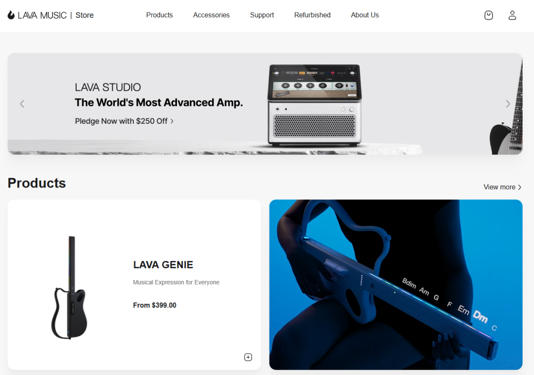 在独立站建设上,LAVA MUSIC 品牌采取了与竞品截然不同的策略。