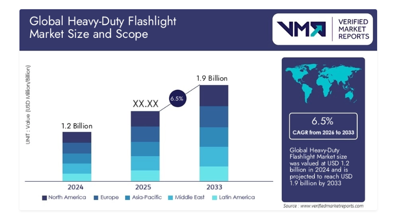 据 Mordor Intelligence 报告,全球手电筒市场规模预计将在2025年达到75.2亿美元,2023–2030年复合年增长率约为6.48%。Statista数据显示,全球高性能手电筒市场将从2023年的36亿美元增长至2028年的52亿美元,复合年增长率达7.6%。其中,北美和西欧仍是最大消费市场占据近60%的份额。