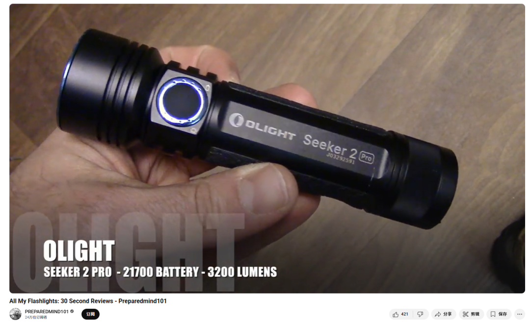 这类创作者通常以YouTube为主阵地,具备相对稳定的观众群和专业形象。例如频道 Project Farm 凭借其“横评 10 款手电筒亮度、续航、耐摔性”的系列测评获得百万级播放,并因无商业置换、严谨测试流程建立了强信任度。另一位红人 PreparedMind101,主打战术和生存向内容,频繁将手电筒与其他生存装备组合演示,深受军警、荒野爱好者群体欢迎。