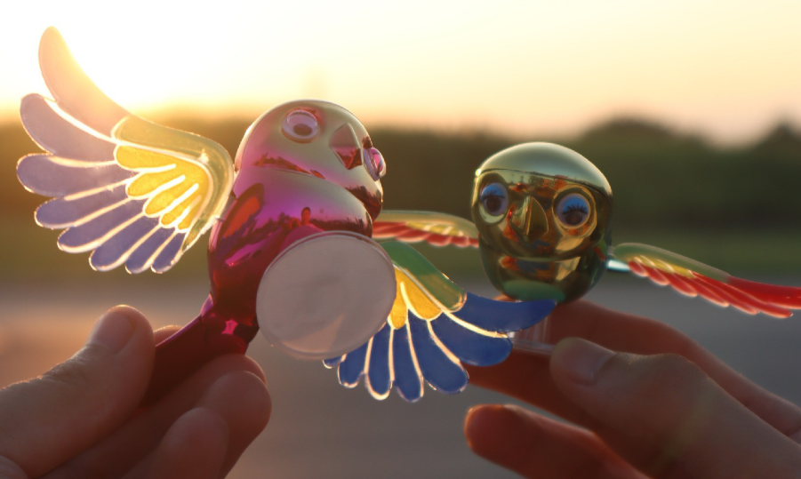 据悉,这款刷屏全球的伴飞小鸟出自义乌国际商贸城厨具店老板陈果之手,产品灵感来源于一次云南自驾途中邂逅的小鸟。