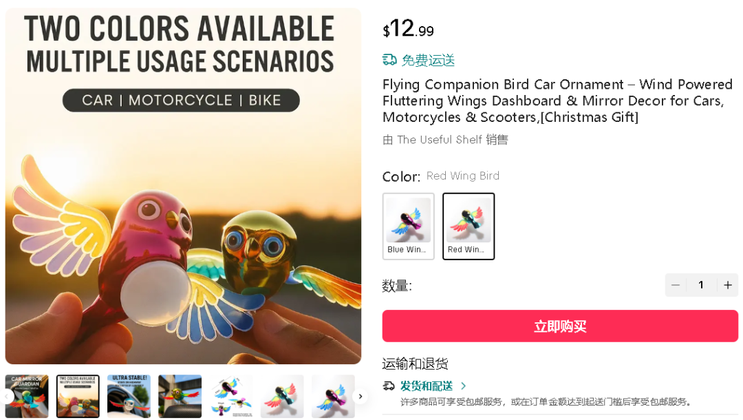 随着产品陆续到达消费者手中,在 TikTok 上搜索“Flying Companion Bird Ornament”关键词时,已经能够看到一些用户上传的伴飞小鸟作品了,不过真正开始售卖的卖家并不多。