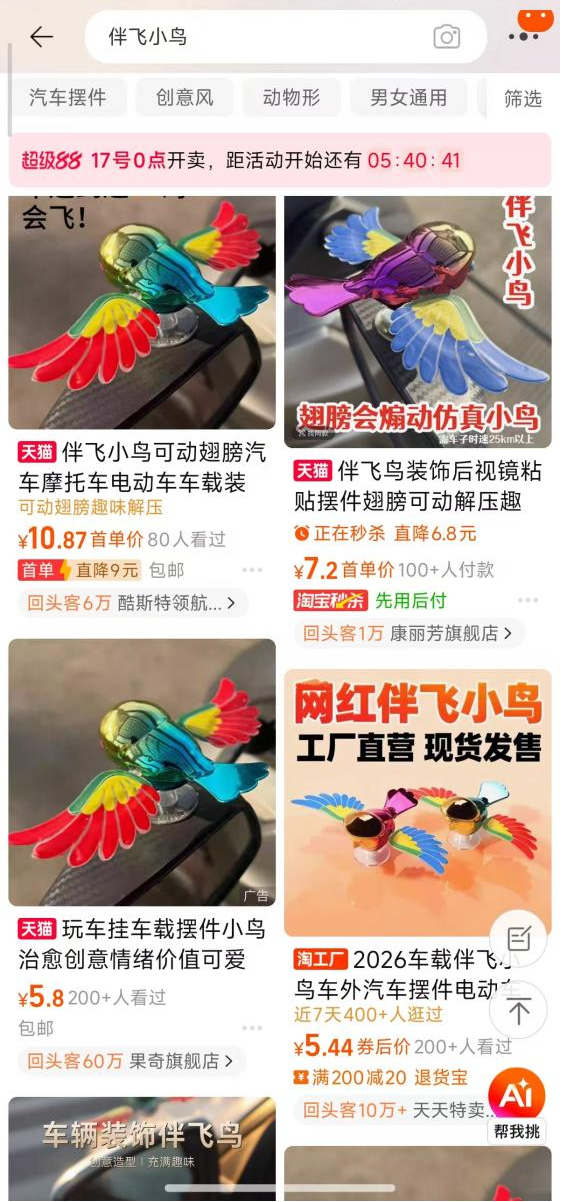 前段时间,一款手掌大小的原创车载玩具“伴飞小鸟”意外爆红。