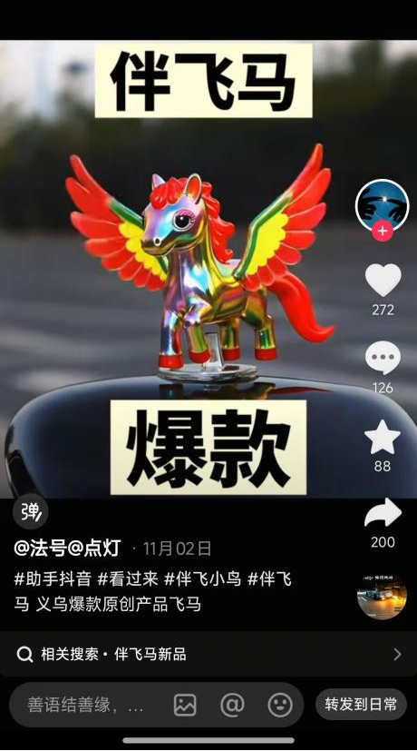 另外一个更现实的问题是,当山寨产品蜂拥而上时,也就意味着爆品的红利期在逐渐消失了。随着产品热度持续攀升,在视频平台上甚至还能刷到“伴飞马”、“伴飞独角兽”、“伴飞猫头鹰”等伴飞动物系列产品的 AI 生成图。
