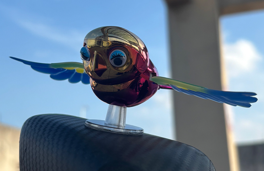 “如果把这种温暖做成产品,让它陪伴更多人会怎么样?”就这样,回到义乌后,陈果花了整整四个月把这个想法变成现实。为了让翅膀能够随着车速自然扑动,他还专门请教了空气动力学方面的专家;为了找到最恰到好处的扑翼频率,他做了上百次翅膀测试;为了兼顾成本、量产和细节,他采用塑料合金材质与立体工艺让造型更生动,反复进行了三版模具的修改,最终才呈现出如今这只会随风轻盈振翅的小鸟。