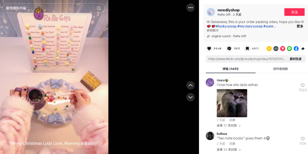 例如前段时间在 TikTok 上爆火的“沉浸式盲勺打包”视频,真正吸引人的并不是打包动作本身,而是用户在这个充满未知与期待过程中获得的新奇快乐与情绪满足感。