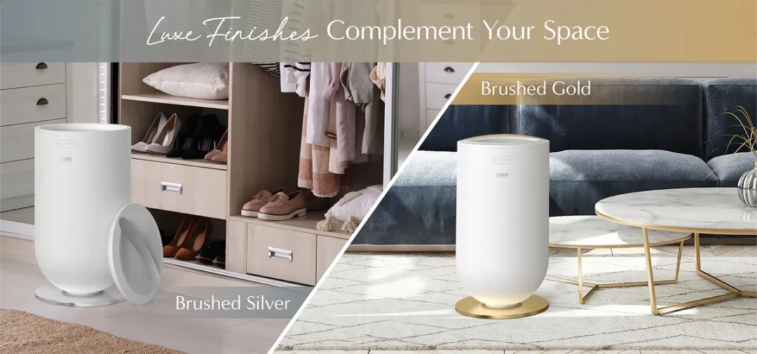 这款外观设计偏奢华酒店风,有白+拉丝金、白+拉丝银两种高端配色供选择,独立站售价约$150,比基础款高出30%左右,匹配追求家居奢华感用户的需求。
