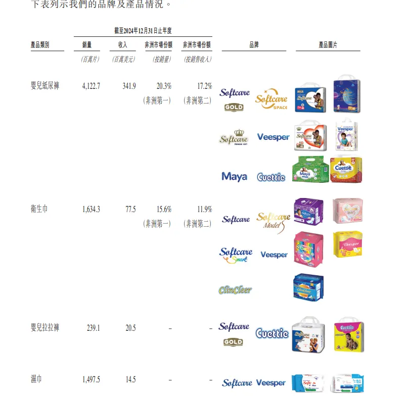 西非和东非是乐舒适目前最重要的两大阵地,2024 年分别为公司带来了 42.9% 和 45.6% 的收入。而在所有产品中,表现最突出的当属 Softcare 婴儿纸尿裤,它不仅是公司的王牌,更贡献了全年 70% 以上的收入,撑起了乐舒适营收的大半壁江山。