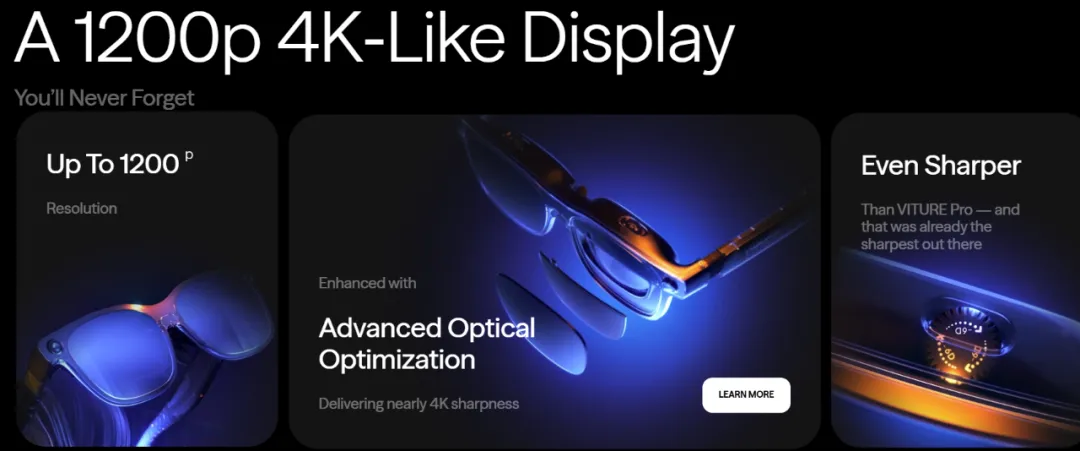 其 VITURE Luma 系列产品实现了多项技术突破,如全球首款支持手势操控技术、6DoF 空间交互、索尼新一代 0.68 英寸 Micro-OLED 屏、等效 3 米152英寸大屏等。