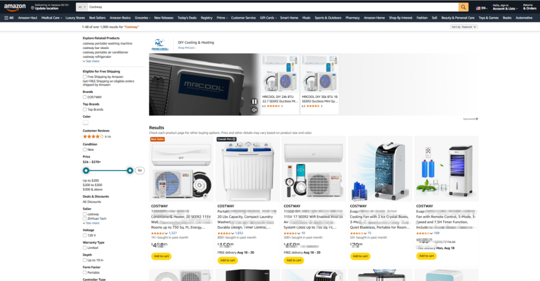 品牌发展初期,Costway 选择了一条稳妥的路径:入驻成熟的第三方电商平台。