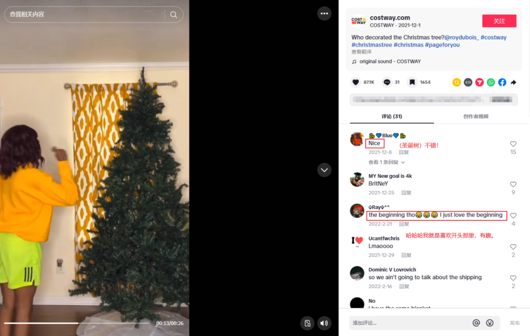 拥有 410 万粉丝的 TikTok 搞笑达人 @roydubois_,便为 Costway 品牌的圣诞树拍摄了搞笑短视频。