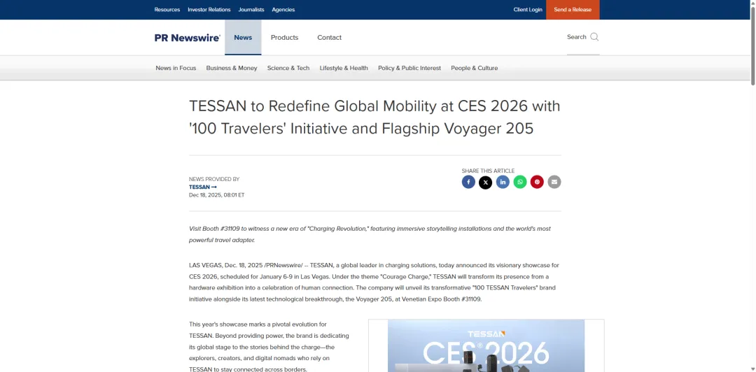 更聪明的是,它还把展会和#100Travelers全球共创计划深度绑定。提前通过PRNewswire发布新闻稿,宣布邀请100位数字游民、旅行者共创故事,展会期间举办“TESSAN Night”晚宴,用短片放映、奖项授予的方式表彰创作者,让用户从“消费者”变成“品牌传播者”。