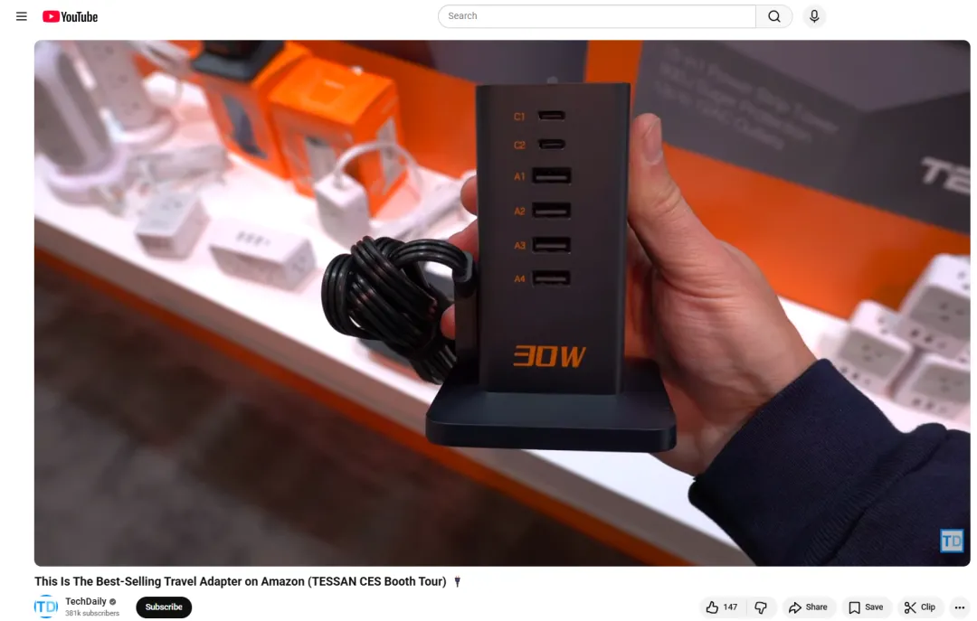 1. 技术拆解型(@Shane Starnes):专注消费电子深度评测,受众是18-34岁年轻科技党,刚好匹配年轻旅行者需求。内容里详细拆解TESSAN GaN插座的技术优势,比如“体积缩小40%、205W大功率、8个接口同时充电不跳闸”,还结合自己的欧洲旅行体验实测,用专业度种草;