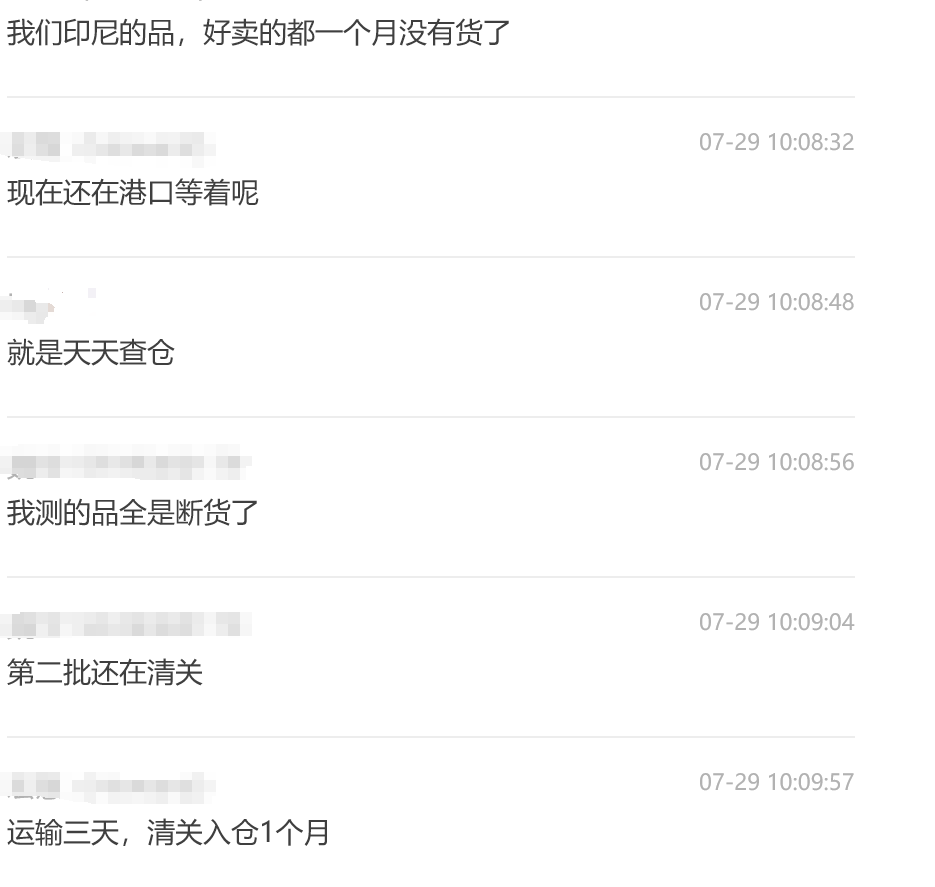 尤其印尼当下正处红灯期,部分品类的商检流程收紧、查验比例提升,导致货物在港口滞留时间延长,船舶靠港、集装箱周转效率大幅降低。正如卖家反馈的“运输三天,清关入仓1个月”,货柜堆存成本、船舶滞期费等隐性成本增加,最终不得不通过运价传导给卖家。