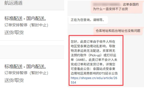 Shopee部分订单停发!泰国一陆运口岸关闭,卖家因时效躺枪?