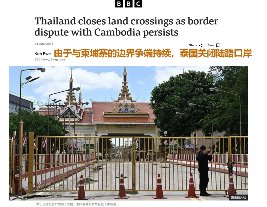路透社消息,泰国和柬埔寨军队在长达 817 公里的陆地边界沿线多个地点发生冲突,泰国当局近日表示,已经关闭与柬埔寨的一个主要边境口岸。