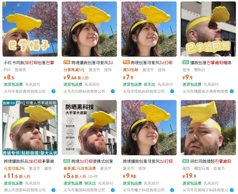 没有精致外观,没有硬核防晒功能,却靠着荒诞又接地气的创意,从 3D 打印圈子一路火到抖音、小红书、TikTok、亚马逊,网友们纷纷喊话义乌,想要搞到同款“只手遮天帽”,不少跨境卖家也盯着商机,想快速分一杯羹。