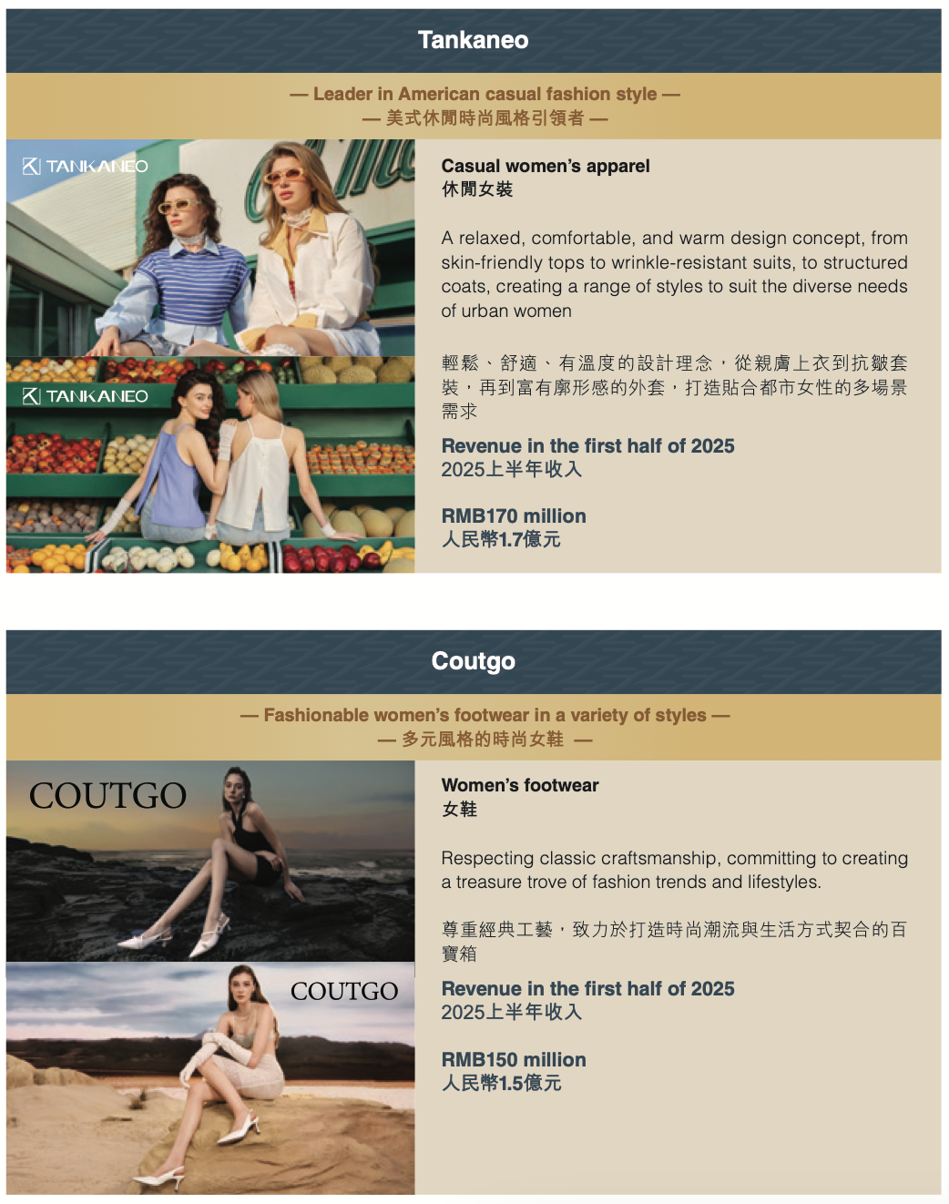 以其主打类目休闲女装和女鞋为例,代表品牌分别是 Tankaneo 和 Coutgo,半年品牌收入分别达到 1.7 亿元和 1.5 亿元。