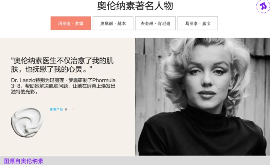 最具标志性的便是它成为了玛丽莲・梦露生前唯一代言的护肤品牌,奥黛丽・赫本、杰奎琳・肯尼迪等名流也都是品牌的忠实用户。