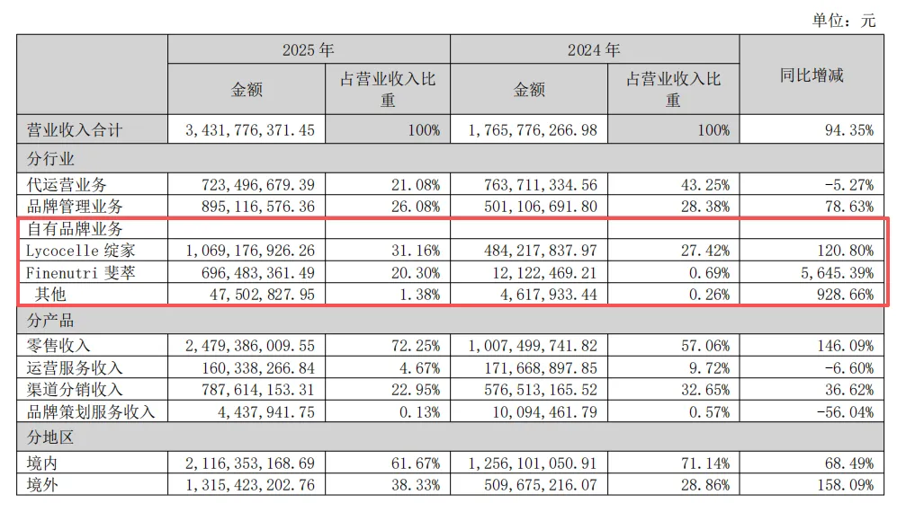 其中自有品牌业务营收突破 18 亿元,同比暴涨 262%,占总营收比重高达 52.83%,彻底成为公司的核心增长引擎;