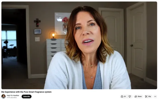 YouTube 深度信任背书。选择@Hey! It's Heather、@The Pink Envelope 等真实体验类博主,基于 2-3 年使用经验输出非赞助评测,既认可“智能控制、香氛丰富”等优势,也客观指出“香薰瓶未用尽即停止工作”“车载产品噪音大”等问题,形成全面口碑,帮助潜在用户建立理性认知。